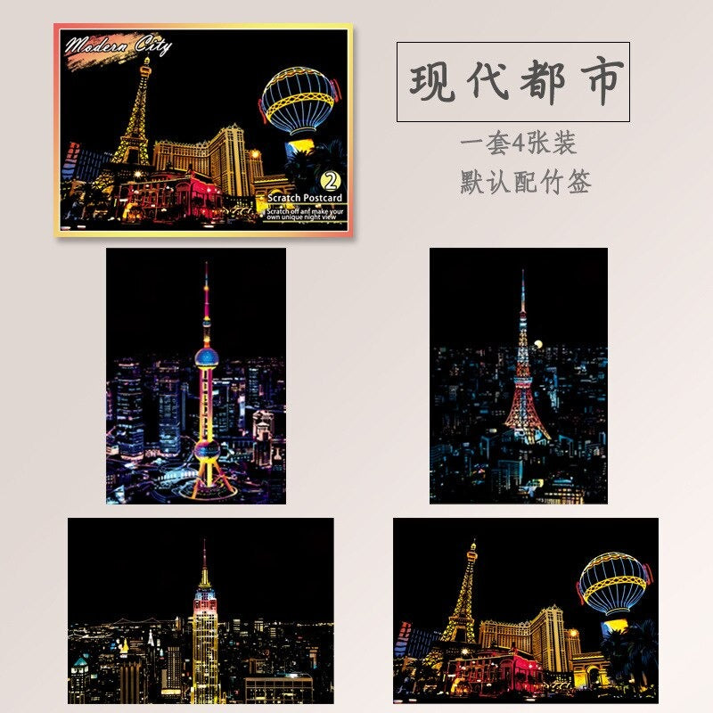 Scratch Painting - 4 postales de 20x14 CM